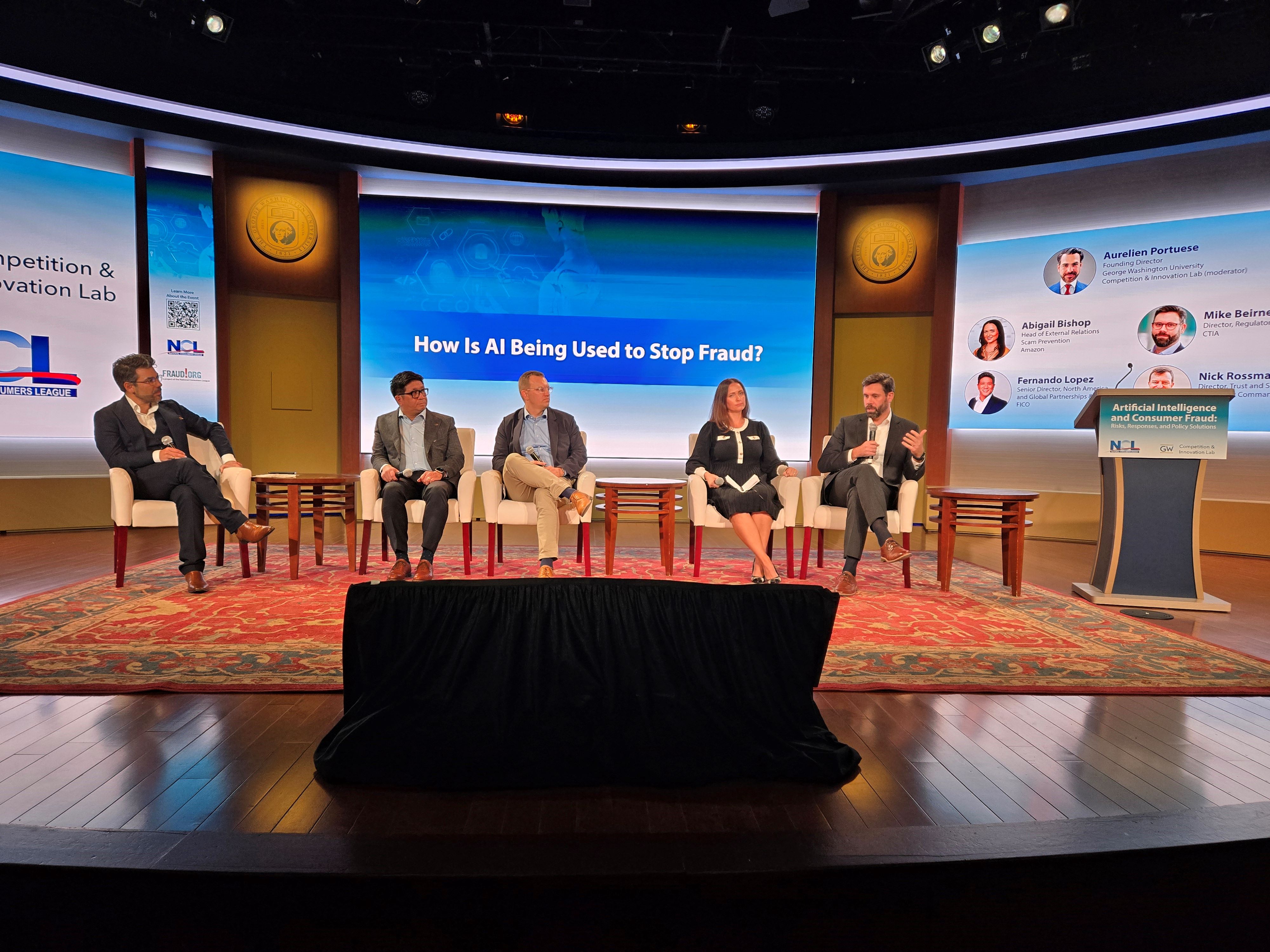 Panel 2 - How is AI Being Used to Stop Fraud? Moderator - Aurelien Portuese (GW Competition & Innovation Lab) Abigail Bishop (Head of External Relations, Scam Prevention, Amazon)  |