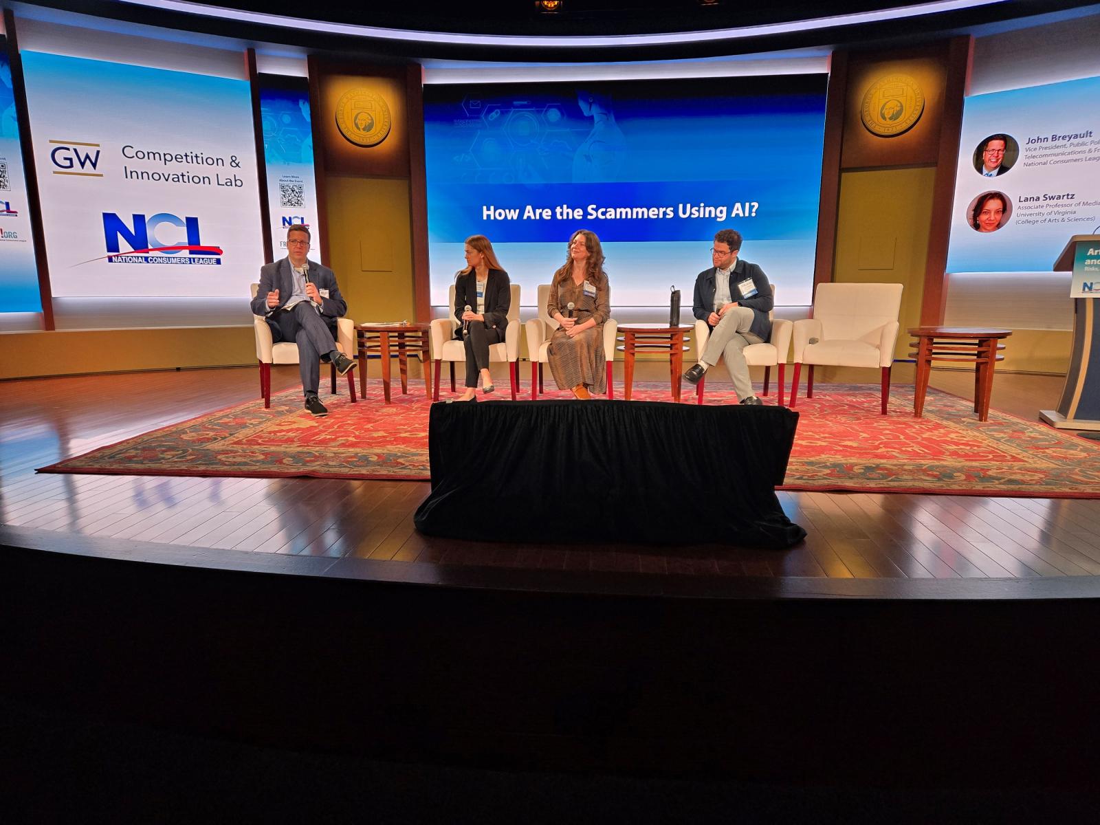 The GW Competition & Innovation Lab and the National Consumers League jointly organized the conference "Artificial Intelligence and Consumer Fraud: Risks, Responses, and Policy Solutions" on September 17th of 2025 at the George Washington University.